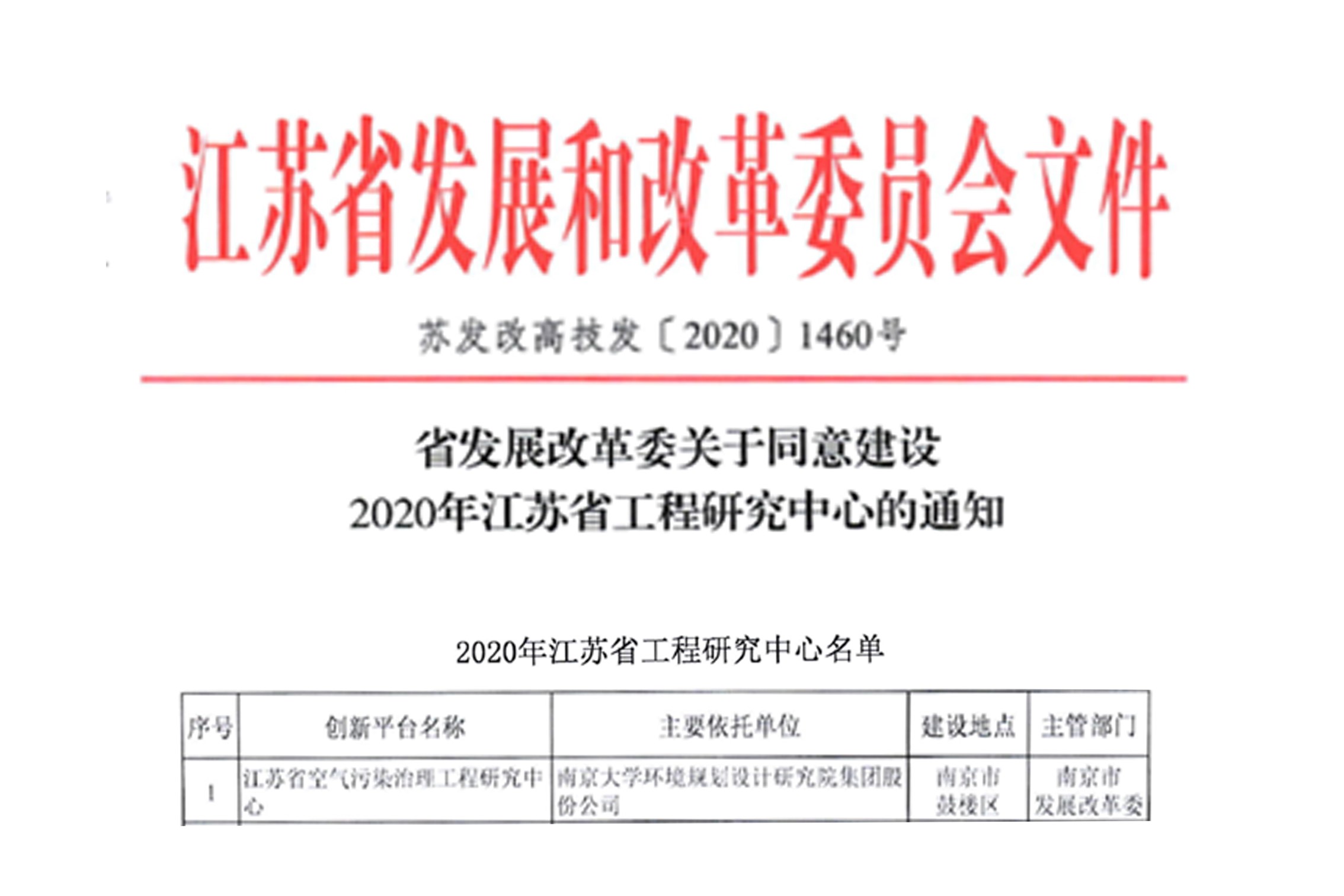 佳節(jié)傳喜訊!南大環(huán)規(guī)院集團獲批“江蘇省空氣污染治理工程研究中心”