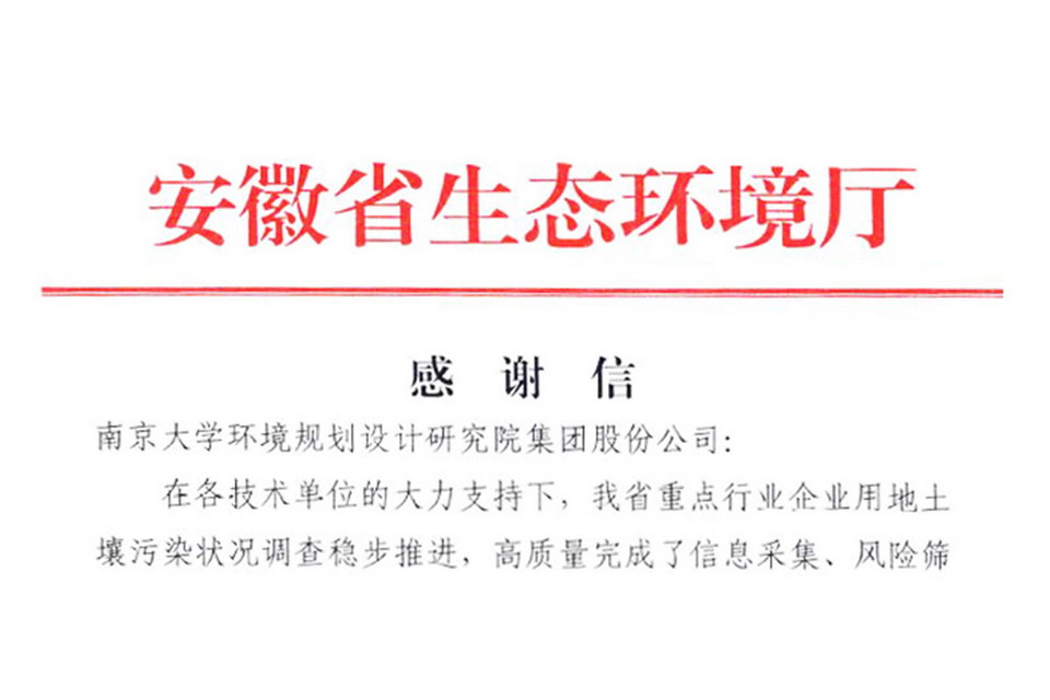 安徽省生態(tài)環(huán)境廳來函致謝張啟等14名技術(shù)專家