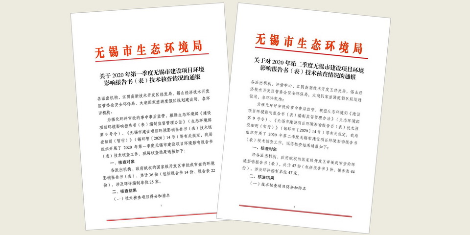 近日,無錫市生態環境局通報了2020年第二季度建設項目環境影響報告書(表)技術核查情況,南大環規院集團在本次抽查的47家環評編制機構中再次拔得頭籌。這也是集團連續兩個季度在無錫市建設項目環境影響報告書(表)技術核查中獲得排名第一。