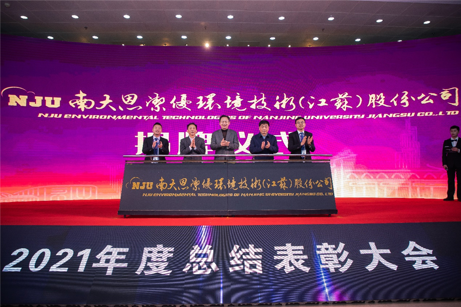 之后,集團子公司“南大恩潔優(yōu)環(huán)境技術(江蘇)股份公司”舉行了揭牌儀式,鄒亞軍副校長、任洪強院士、尹建康董事長、陸朝陽總裁、徐遵主總經(jīng)理共同為新公司揭牌。