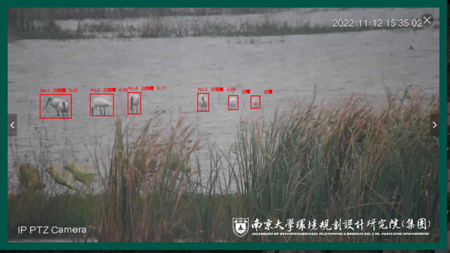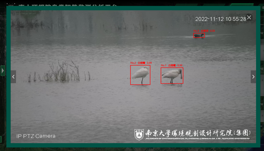 本次抓拍并識別到白琵鷺的南大環規院鳥類智能監測系統為南大環規院牽頭自主設計、聯合國內人工智能領域排名第一的高?!暇┐髮W共同研發的系列人工智能生態監測產品之一。系統基于視頻檢測及識別等行業領先的人工智能技術,主攻濕地水鳥識別監測與數據統計分析,基于南大環規院長期在我國長三角地區開展生物多樣性調查工作積累的鳥類圖片數據庫進行系統識別準確性訓練,水鳥識別準確率高、計數精確、珍稀瀕危物種識別后可自動上報提示。此外,系統有著強大的物聯及拓展能力,能夠便捷的與各類視頻監控系統相融合,極大的節省人力監測成本和系統建設成本。在當前全省掀起開展生物多樣性觀測網絡建設大潮的進程中,人工智能生態監測系統必將成為輔助人力監測的利器,南大環規院也將致力于研發更多的人工智能生態監測產品,助力全省生物多樣性觀測網絡更先進、更準確、更智能。